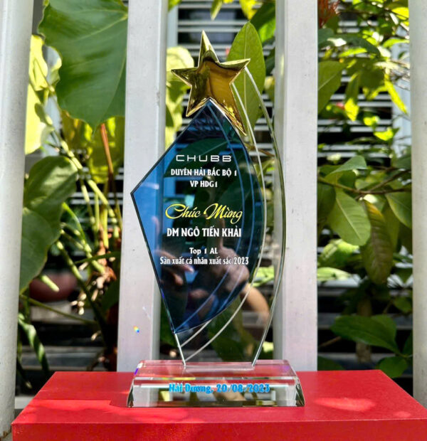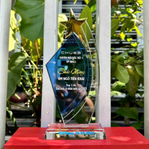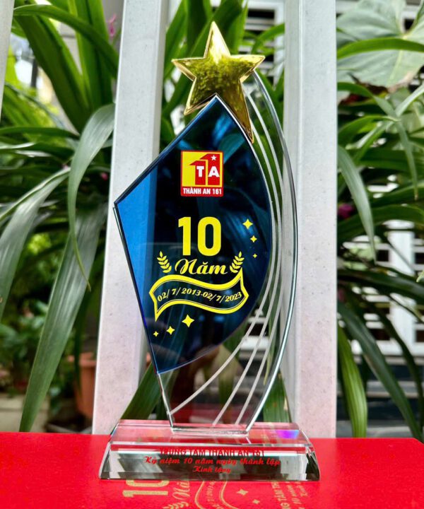 Tên sản phẩm: Biểu trưng pha lê (mẫu cánh buồm sao xanh)