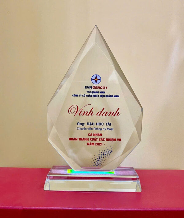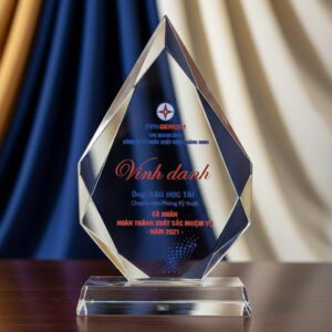 Vật phẩm trang trí: Biểu trưng pha lê còn là món đồ trang trí đẳng cấp trên bàn làm việc hoặc tủ trưng bày.