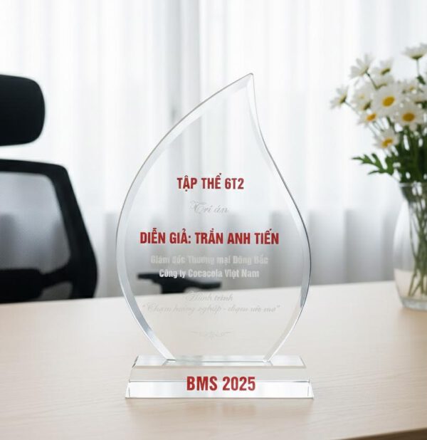 Vật phẩm trang trí: Biểu trưng pha lê còn là món đồ trang trí đẳng cấp trên bàn làm việc hoặc tủ trưng bày.