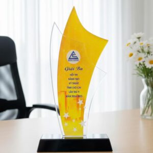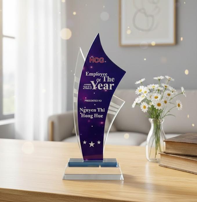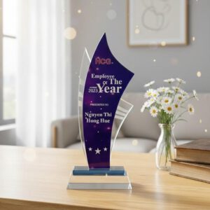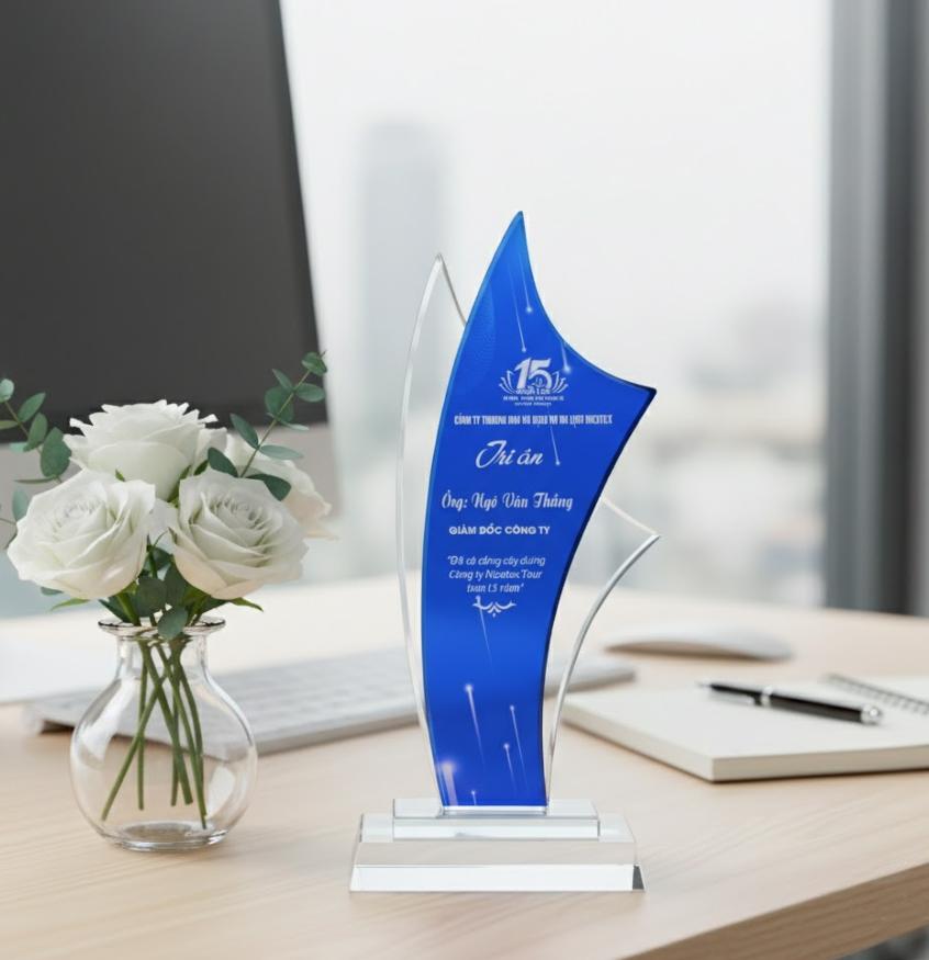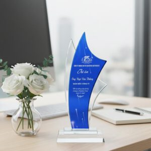 Vật phẩm trang trí: Biểu trưng pha lê còn là món đồ trang trí đẳng cấp trên bàn làm việc hoặc tủ trưng bày.