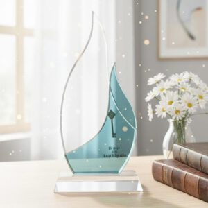 Vật phẩm trang trí: Biểu trưng pha lê còn là món đồ trang trí đẳng cấp trên bàn làm việc hoặc tủ trưng bày.