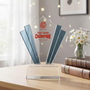 Vật phẩm trang trí: Biểu trưng pha lê còn là món đồ trang trí đẳng cấp trên bàn làm việc hoặc tủ trưng bày.