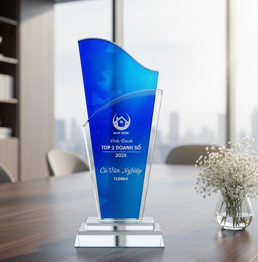 Vật phẩm trang trí: Biểu trưng pha lê còn là món đồ trang trí đẳng cấp trên bàn làm việc hoặc tủ trưng bày.