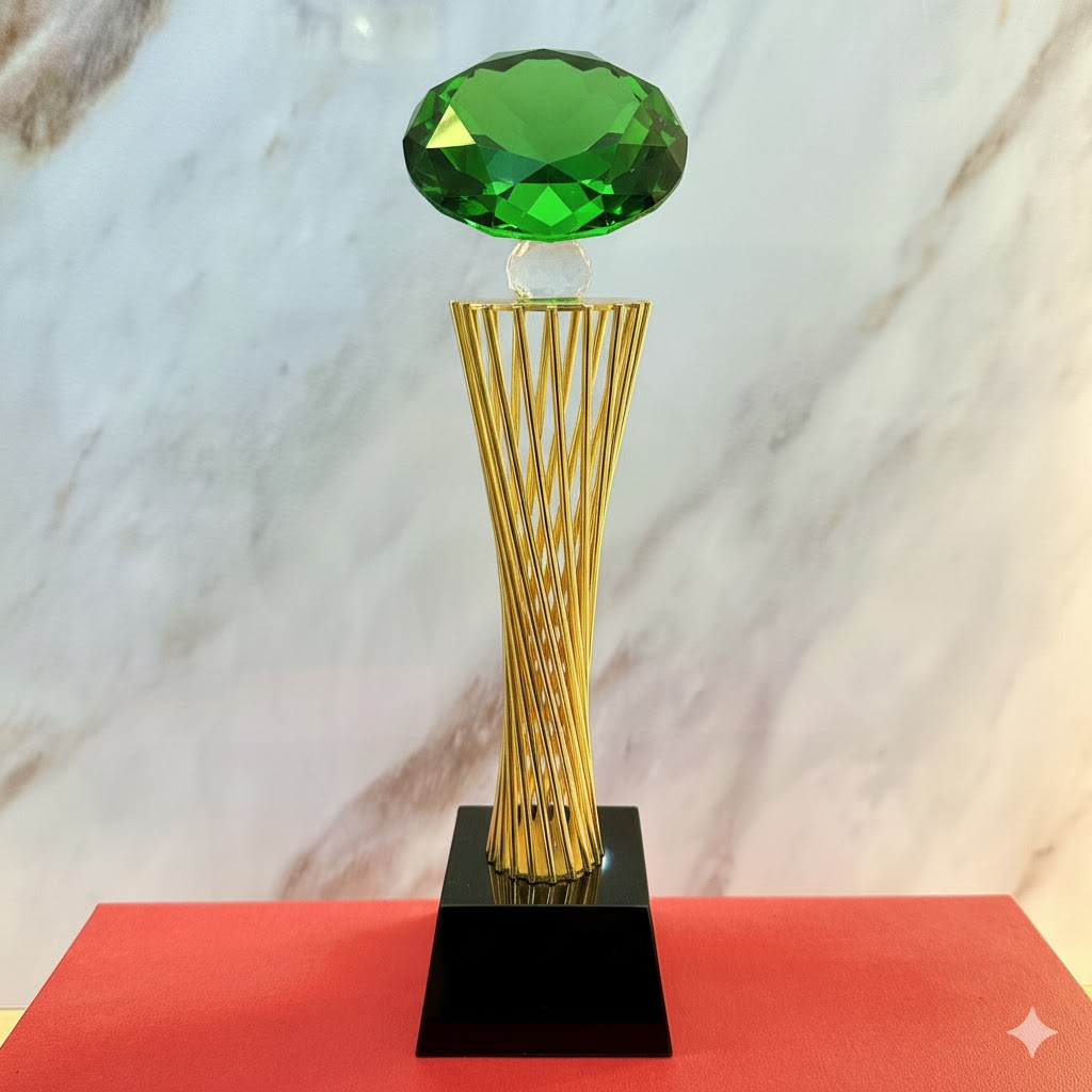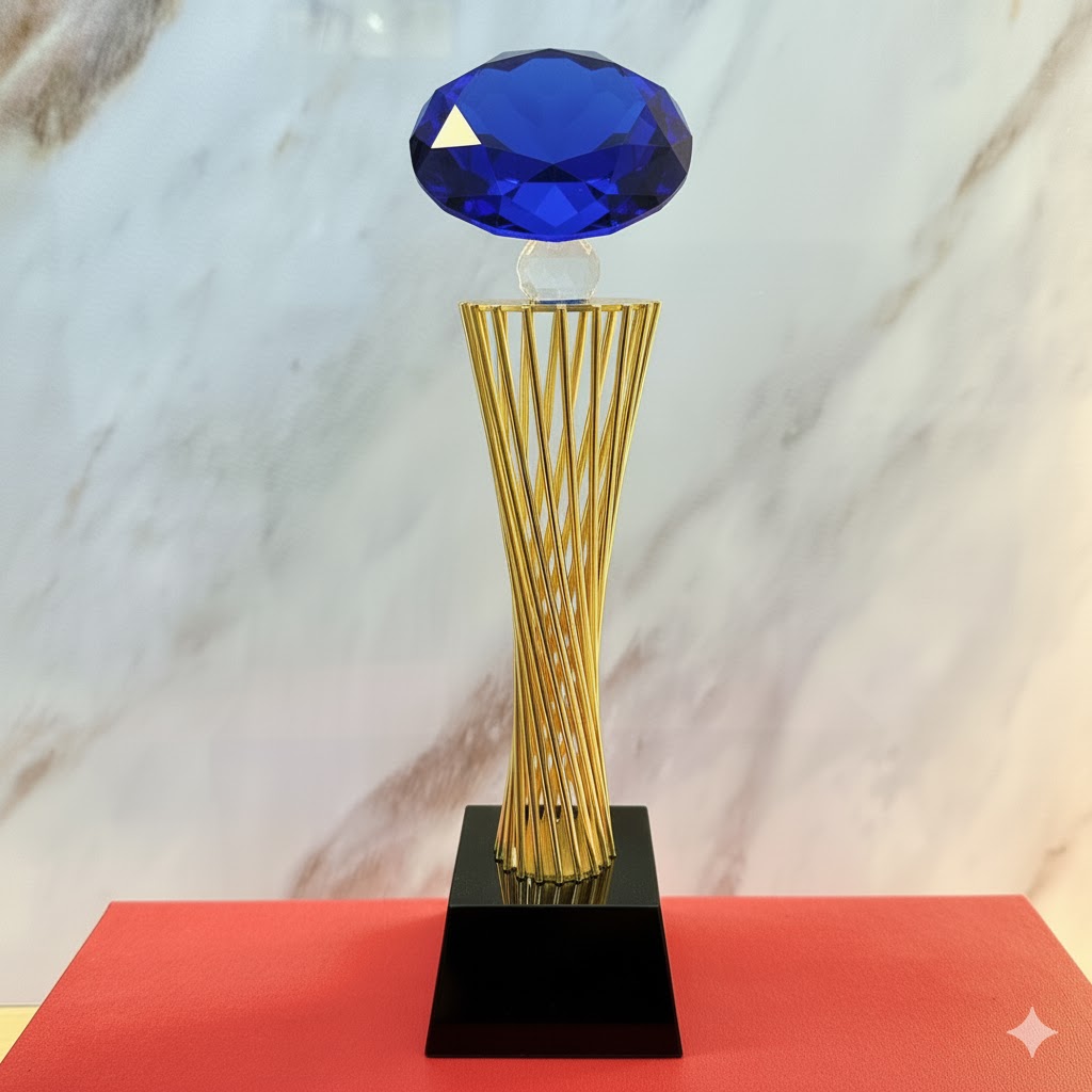 Mẫu cúp mang vẻ đẹp độc đáo, kết hợp giữa kim loại và pha lê