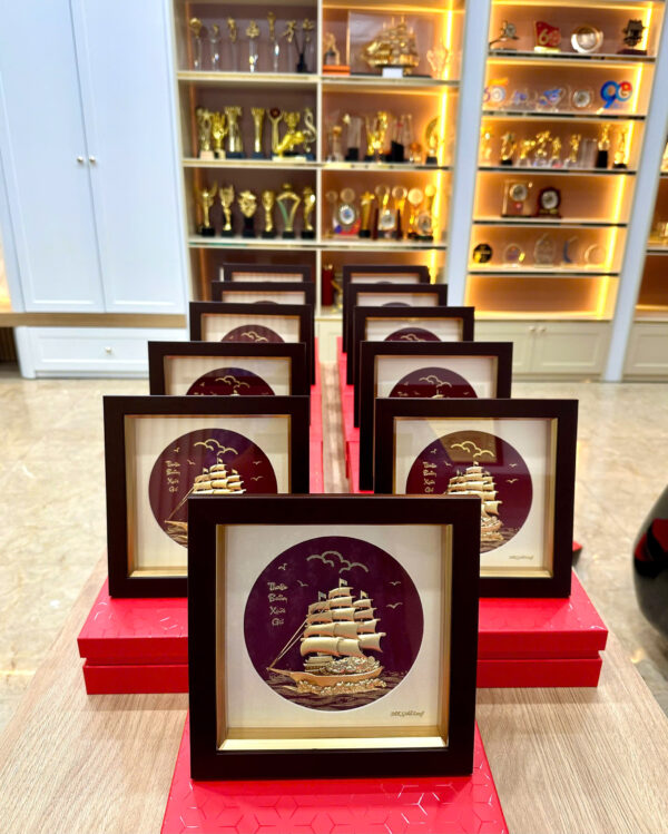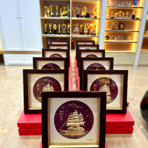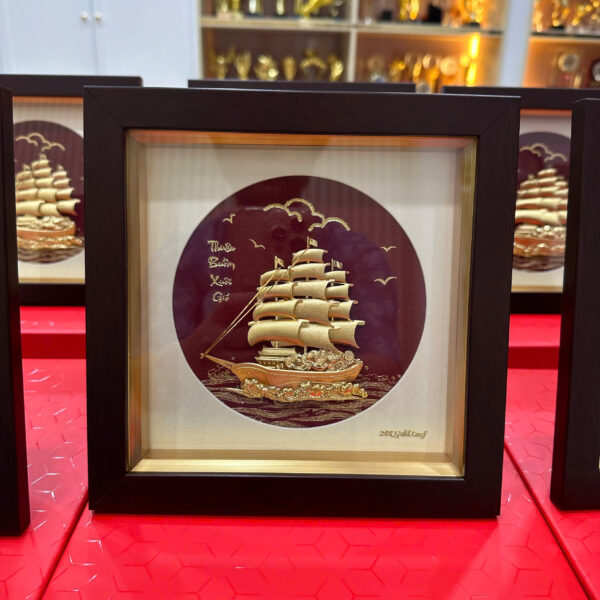 Chất liệu: Thuyền mạ vàng/dát vàng 24k, khung gỗ kính
